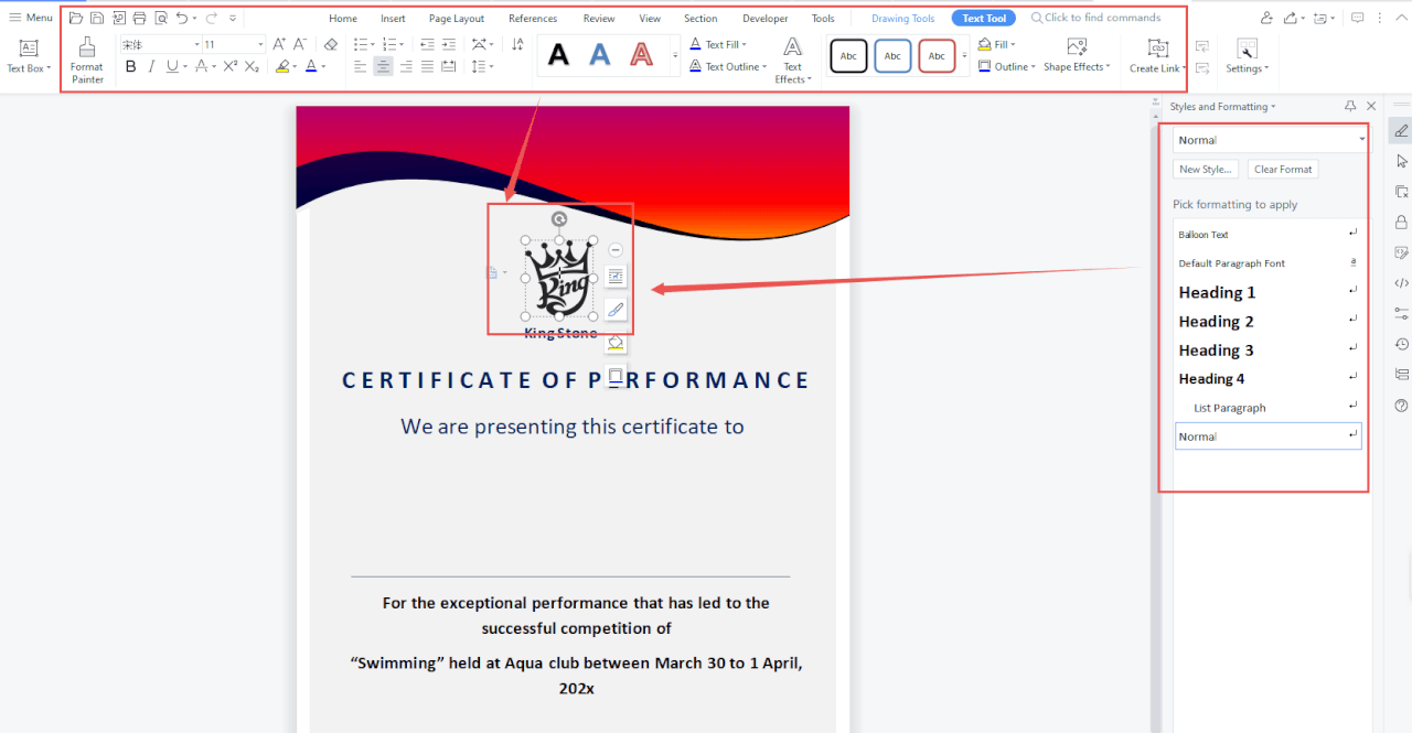 Cuba templat ini dalam WPS dan simpan dalam Word doc: